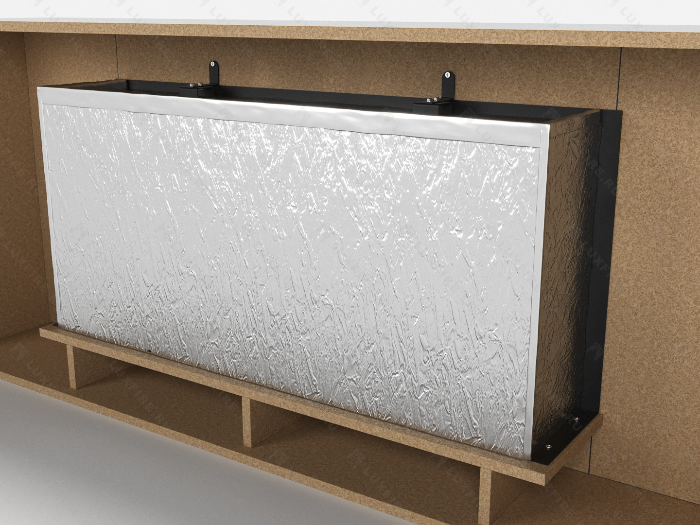 Представляет собой сборную окрашенную конструкцию из МДФ c портальным биокамином Lux Fire "Фаер Бокс 1-42"