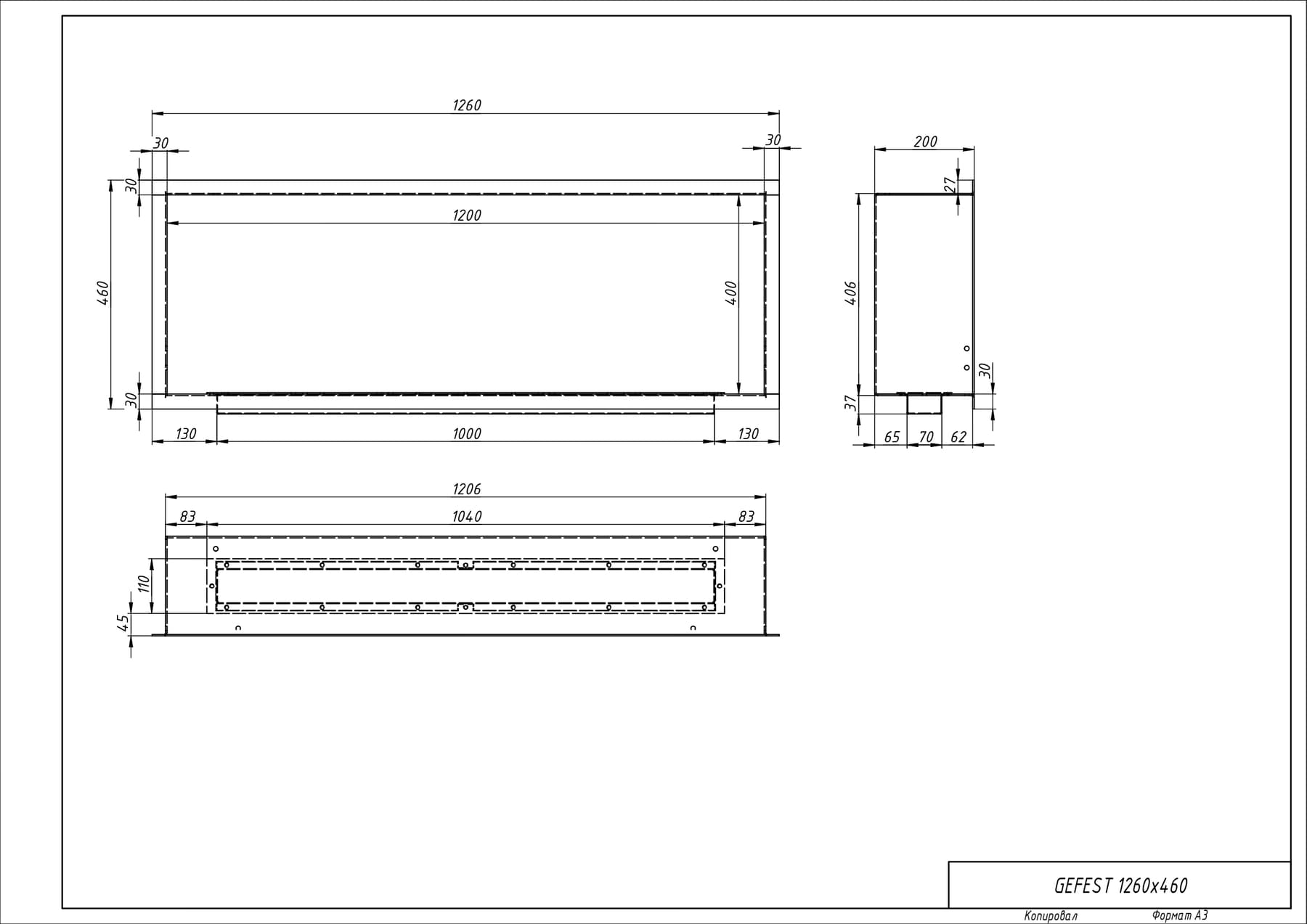 Встраиваемый биокамин «Гефест 1260V» изготовлен из стали и нержавеющей стали, окрашен термостойкой порошковой краской.