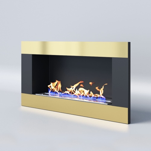 Небольшой биокамин золотого с черным цвета, который прекрасно подойдет как встраиваемый вариант для украшения вашего дома. Отлично вписывается в интерьер небольших помещений и комнат.