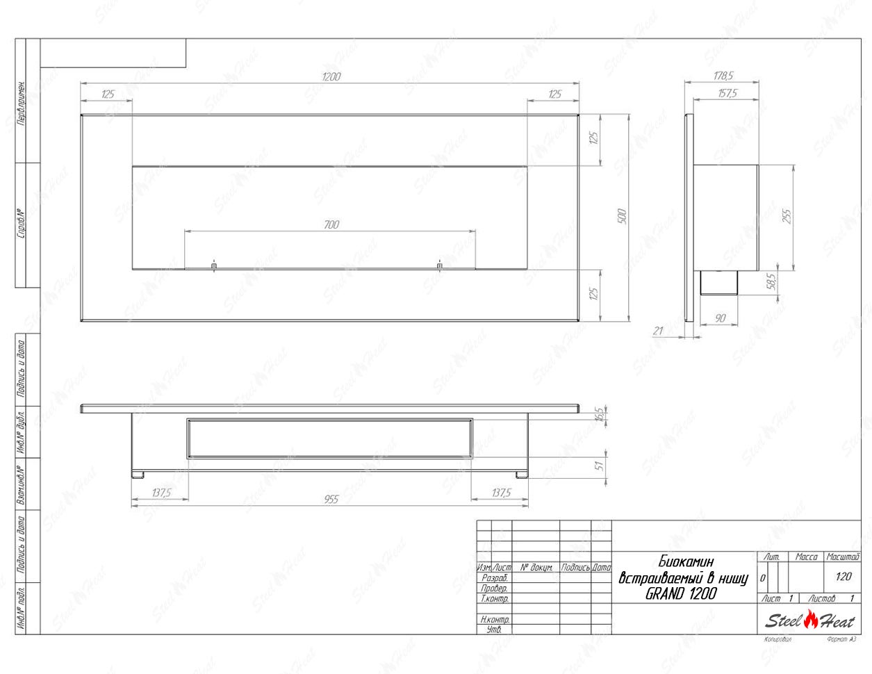 Биокамин SteelHeat GRAND-H 1200 - Характеристики