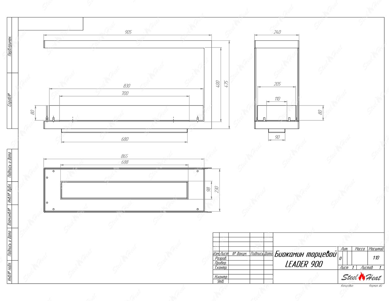 Встраиваемый Биокамин торцевой SteelHeat Leader 900предназначен для встраивания в глухие ниши из гипсокартона, кирпича, пеноблоков, бетона.