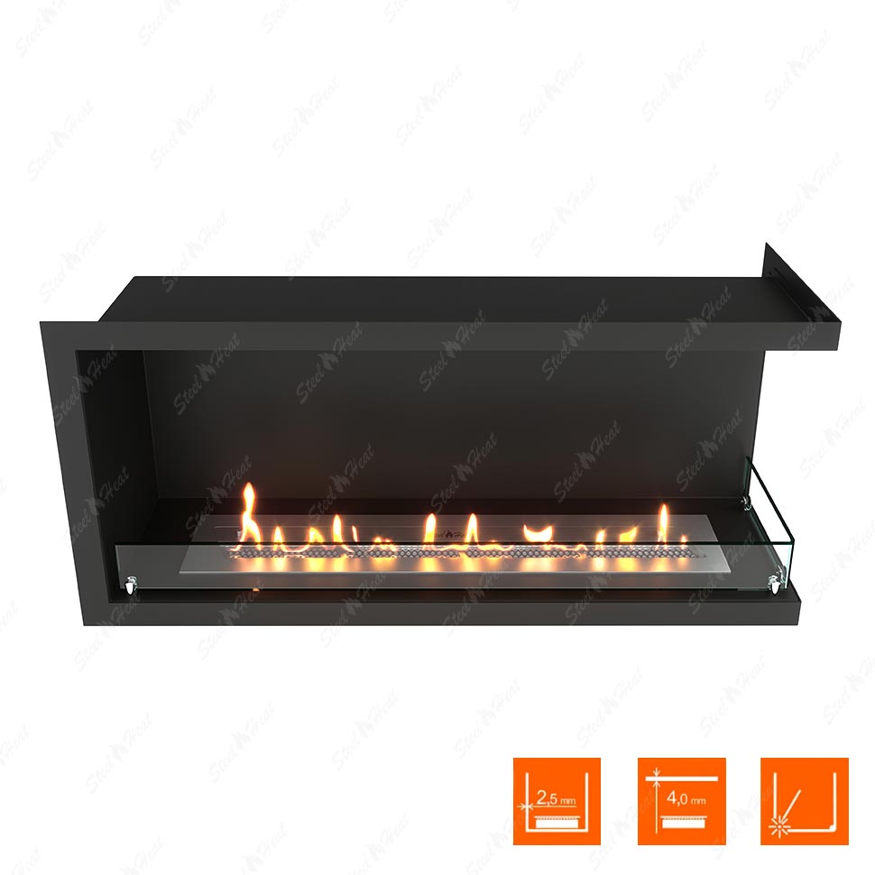 Встраиваемый Биокамин угловой SteelHeat Leader 1000 правый предназначен для встраивания в глухие ниши из гипсокартона, кирпича, пеноблоков, бетона.