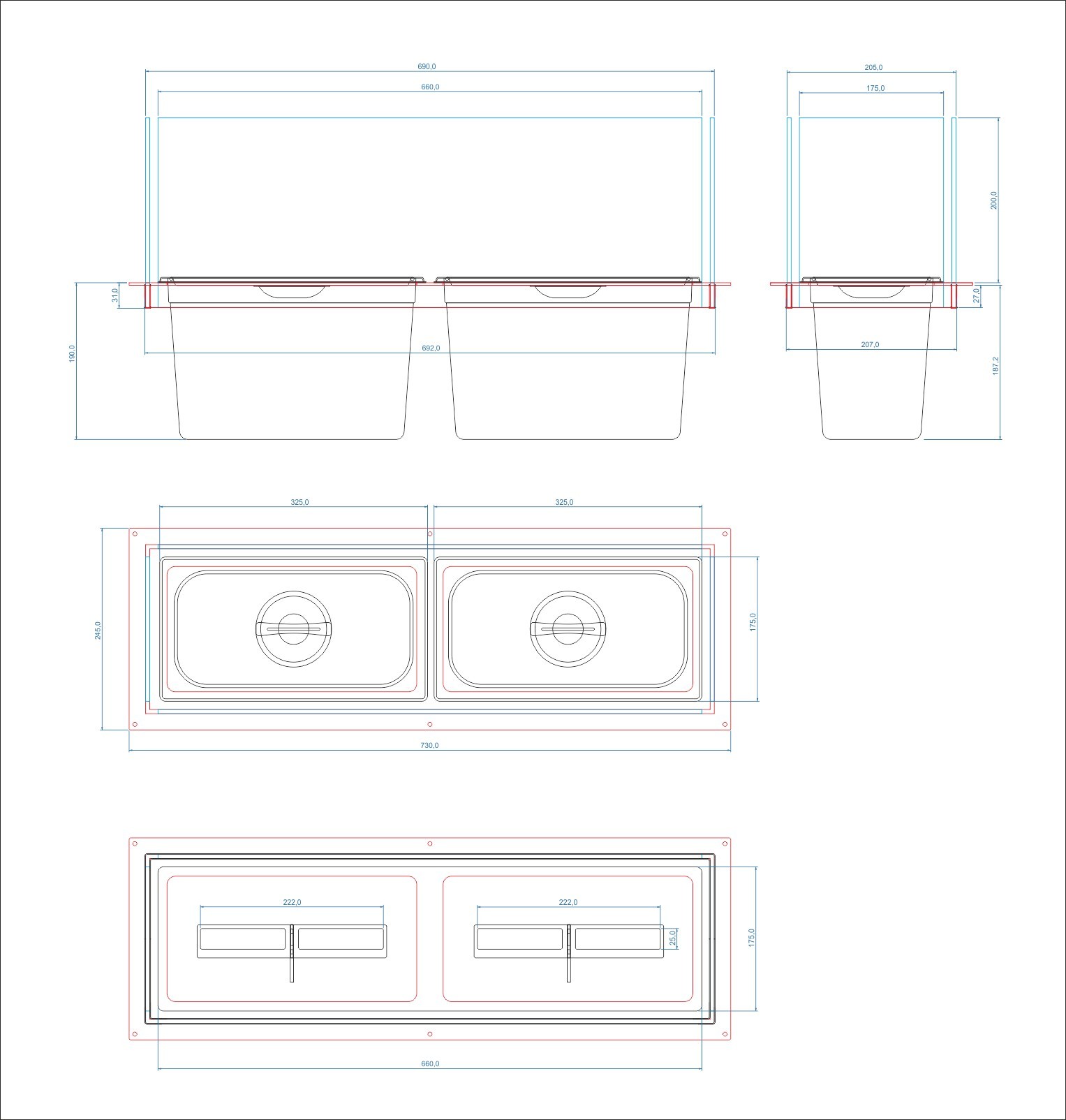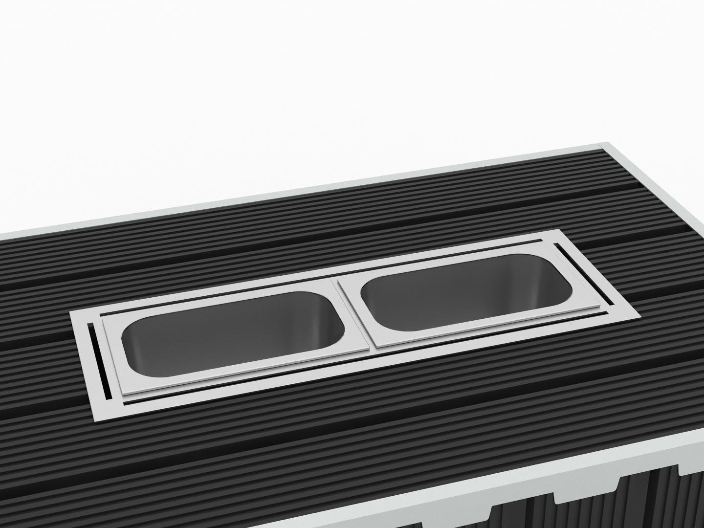 В универсальную рамку вместо биокамина при необходимости можно вставить две гастроемкости 1/3 ( 327х176х200 мм) со льдом