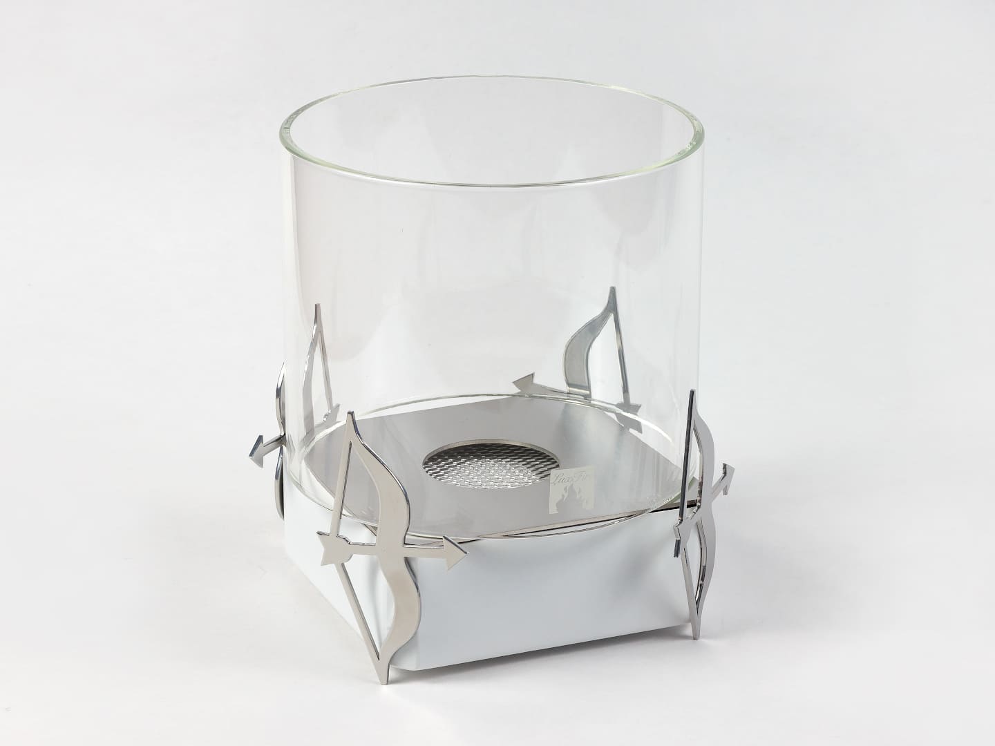 Представляет собой металлический внешний корпус с встроенным топливным блоком Lux Fire 150-2 на декоративных ножках в виде Стрельца. Огонь ограничивается стеклянным закаленным плафоном диаметром 180 мм.Среднее время горения 3 часа