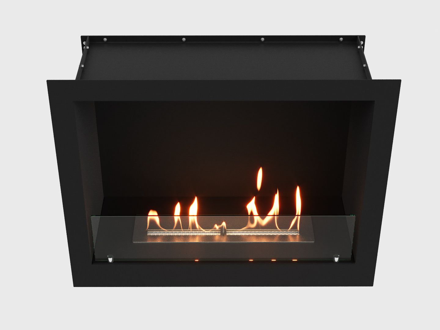 Открытый с фронтальной стороны камин на биотопливе предназначен для размещения в стены, ниши или короба.