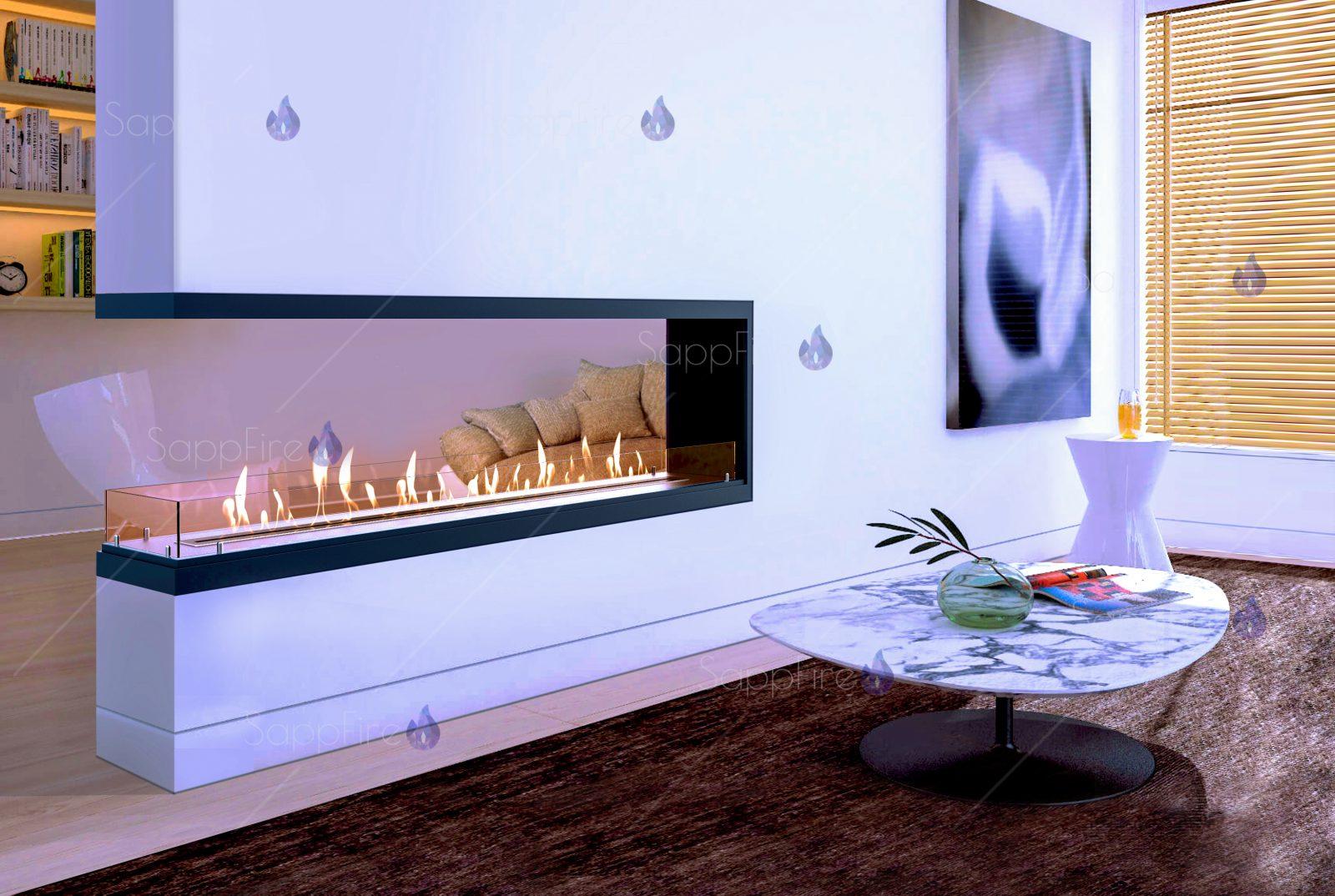 Торцевой сквозной очаг 800 SappFire – отличное решение для оформления интерьера вашей квартиры.Биокамин приобрел более пропорциональные габариты, широкую линию единого огня.