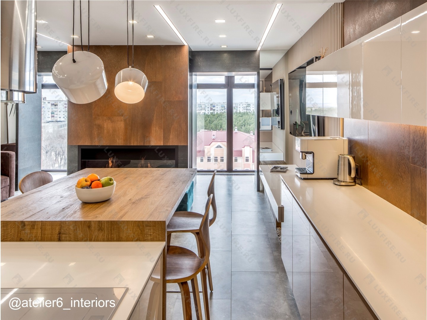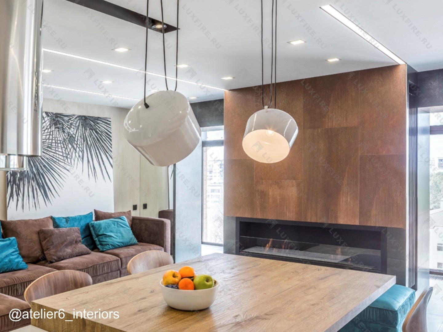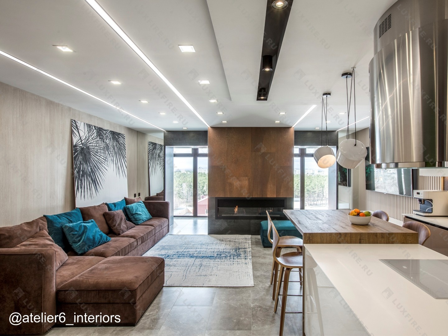 Представляет собой сборную металлическую конструкцию класса М, создающую полузакрытое безопасное пространство для огня с топливным блоком Lux Fire 900МУ ограниченную закаленным стеклом в котором горит живой огонь с углом обзора 180 градусов .