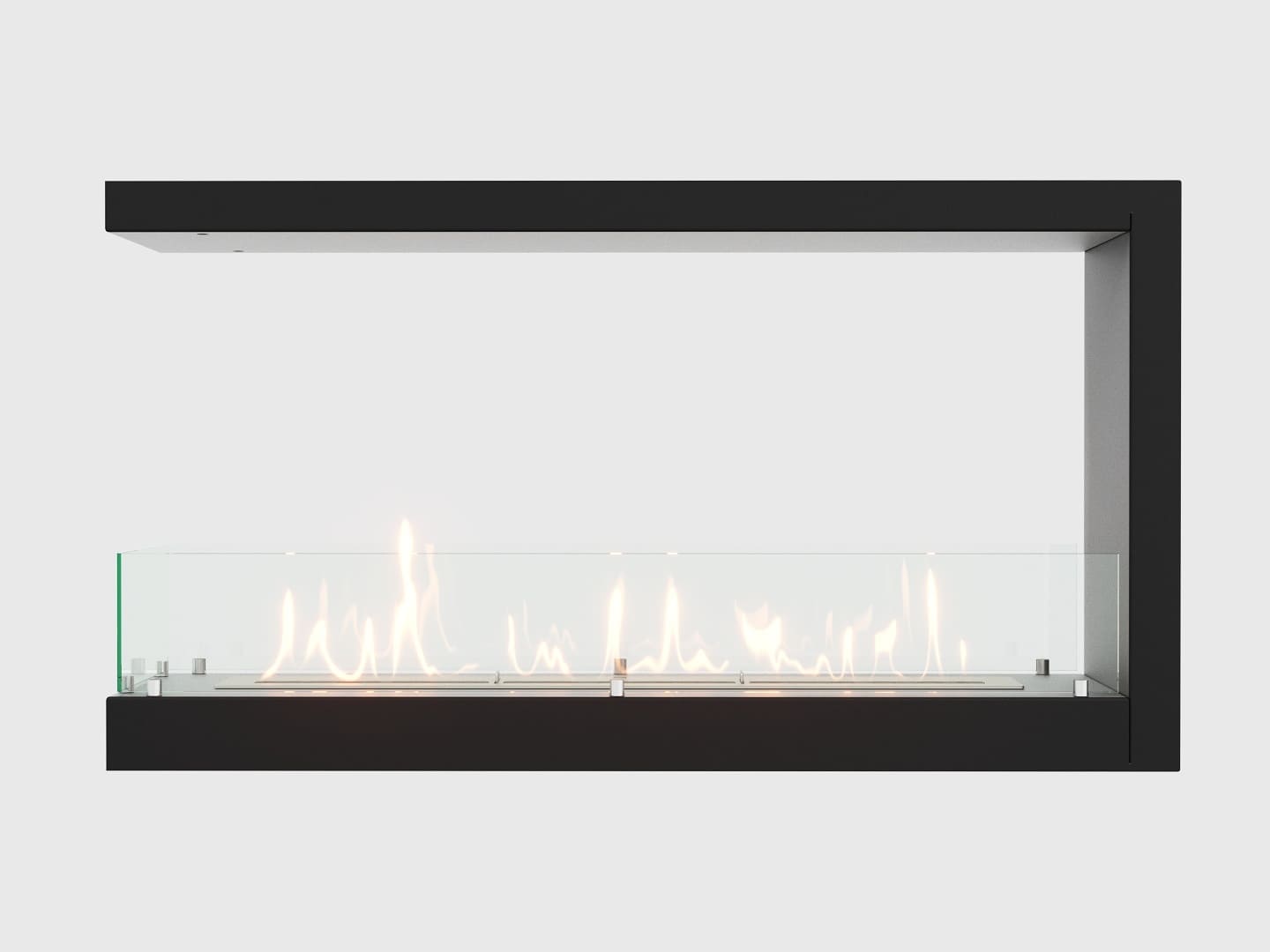 Представляет собой сборную металлическую конструкцию класса M, которая создаёт полуоткрытое безопасное пространство для огня с топливным блоком Lux Fire 900 M ограниченную закаленным стеклом с трех сторон в больших комнатах от 36 м2.Создает эффект свободы пространства с обзором 320 градусов и хорош, когда есть колонна с толщиной не менее 295 мм и стоит выбор как ее обыграть.
