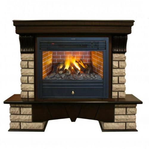Очаг выполнен в современном стиле, но, чтобы исключить внешнюю строгость, его внутренние стенки оформлены под кирпич. Нижняя часть очага выполнена в виде зольника, украшенного изящной ручкой. В верхней части за декоративной решеткой скрыт обогреватель и панель управления. Очаг визуально выглядит более глубоким, что достигается за счет расположения под углом его внутренних боковых стенок. Максимальное сходство с настоящим дровяным очагом обеспечивает крупный Муляж дров и углей, выполненный с высоким уровнем детализации. При работе общей подсветки создается эффект тления дров, что в сочетании с отличной имитацией пламени выглядит очень эффектно. Все электрокамины в первую очередь выполняют декоративную функцию. Представленная модель не является исключением. И реализации этой функции в полной мере способствует дизайн изделия. Оценить же красоту камина можно только после включения очага, в котором эффект пламени выглядит максимально реалистичности. Отвечающая за его формирование система выполнена на основе ультразвукового парогенератора и блока подсветки. Парогенератор используется, чтобы сформировать облако пара, проходящего по направляющим в муляже и распределяемого по нише очага. Одновременно с этим галогеновые лампы подсветки освещают пар снизу, формируя на его фоне изображение языков пламени. Они начинают двигаться за счет обновления пара и колебания паровой завесы. С точки зрения безопасности использование такого каминокомплекта более целесообразно. Ведь тут для формирования пара не используется нагрев воды, благодаря чему «огонь» получается абсолютно холодным. Поэтому даже при полном погружении в него руки невозможно получить травму. Также он привлекателен в плане монтажа. Ведь при работе встроенного очага отсутствуют вредные продукты сгорания, что избавляет от необходимости в прокладке дымохода. Также в каминокомплекте реализована функция обогрева, позволяющая создать в каминной зоне максимально комфортные условия. Равномерному распределению тепла способствует система принудительной подачи подогретого воздуха. Также допустима эксплуатация камина в половину мощности обогревателя и в декоративном режиме. Несмотря на выбранный режим обогрева, система имитации пламени позволит насладиться его красотой и уютом. Единственным продуктом сгорания является водяной пар, попадающий из очага непосредственно в помещение. За счет этого обеспечивается дополнительная функция каминокомплекта – увлажнение воздуха. В сочетании с обогревом это позволяет создать наиболее комфортные условия микроклимата в помещении. Купить каминокомплект Country Rock с очагом 3D Novara 26 вы можете в интернет-магазине «Eco Stroy Complex». Если возникли вопросы или необходимо уточнить отдельные моменты, вам всегда помогут наши менеджеры. Для этого достаточно связаться с ними по телефону или воспользоваться формой обратной связи.Функциональные характеристики каминокомплекта