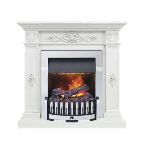 Каминокомплект «Derby» от производителя Dimplex оборудован современным паровым очагом «Danville Chrome», в функционале которого реализована система имитации реалистичного пламени. Изделие характеризуется небольшими габаритами, которые визуально кажутся еще меньше за счет светлой расцветки портала. Это позволяет оформлять с его помощью даже небольшие по площади помещения.