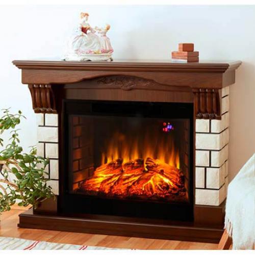 Популярный широкий электрокамин с эффектом реального пламени (запатентованная имитация дров) и с пультом дистанционного управления, с помощью которого можно настраивать яркость пламени, подсветку дров, режим обогрева (1 или 2 кВт), есть таймер на отключение.